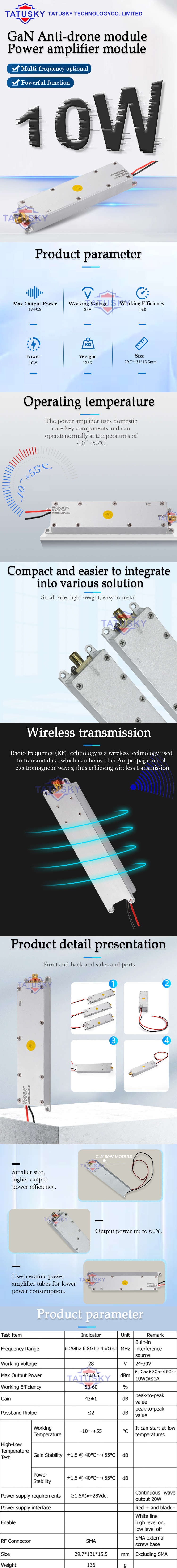 10W 2.4GHz-5.8GHz GaN Anti-drone Module Power Amplifier