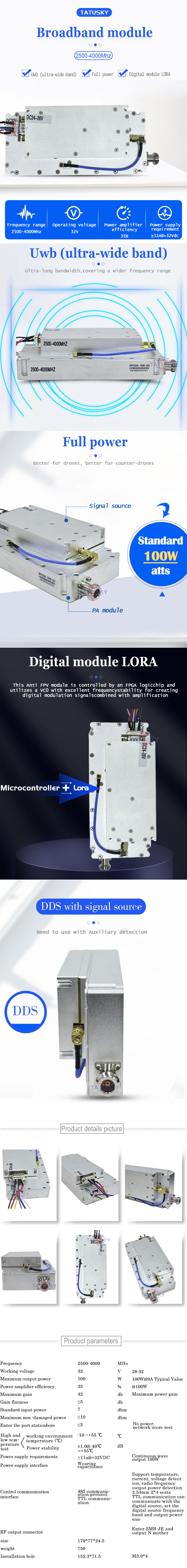 2500-4000MHz 100W GaN Anti-Drone Module