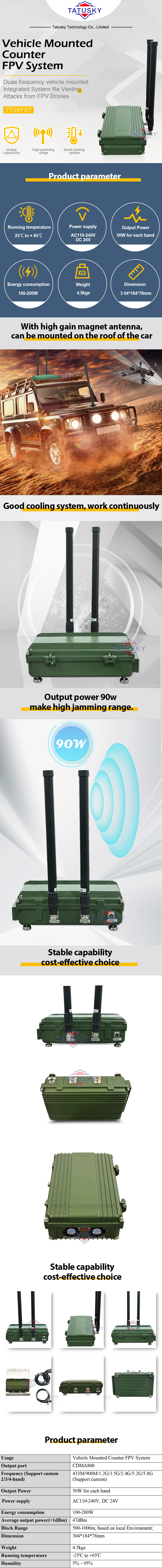For outdoor events necessitating temporary drone mitigation, such as sports, festivals, or VIP gatherings, this jammer supports rapid, non-invasive installation on security vehicles. It ensures immediate drone control and video signal denial over an extended range, aligning with evolving anti drone technology regulations and safety protocols. The compact design minimizes interference with event logistics while delivering effective coverage in high-activity zones. The device’s ability to operate on standard vehicle power supplies allows integration with existing security infrastructure, supporting coordinated counter-drone workflows that enable event management teams to uphold secure, compliant aerial safety standards.